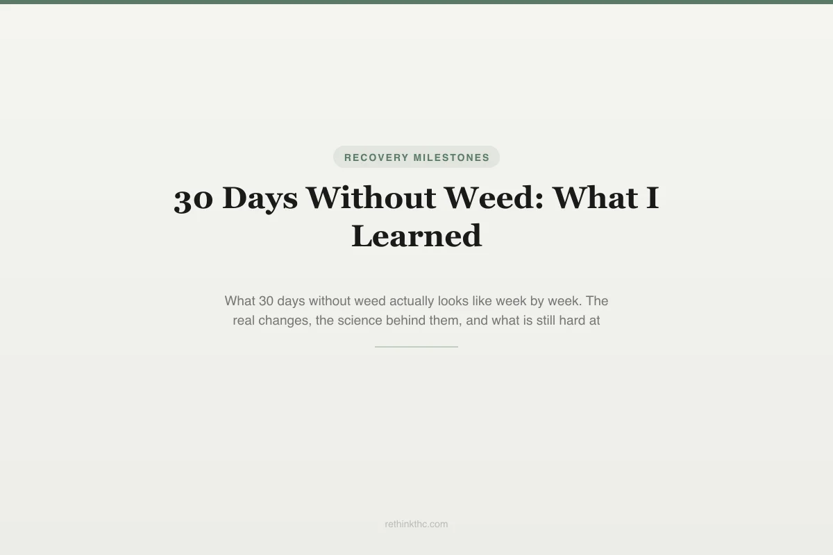 View as imageThirty days without weed sounds like a clean, simple benchmark. One month. Four weeks. But the people who have actually lived through it know that the number hides a lot of messiness. The first 30 days are not a straight line from bad to better. They are a series of distinct phases, each with its own challenges, each revealing something different about what cannabis was doing in the background of your life.