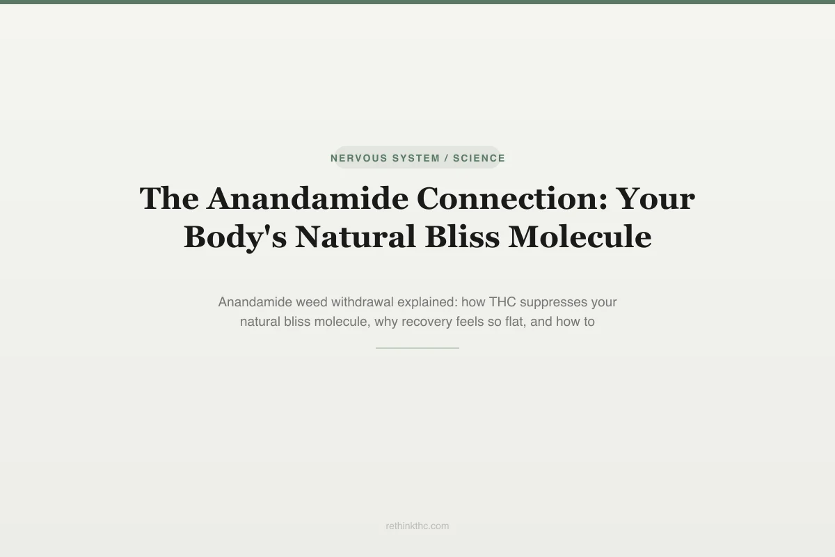 THC hijacks the job of anandamide, your body's natural bliss molecule, and chronic use suppresses its production so deeply that recovery feels like your system is running on low power until CB1 receptors normalize around week four.