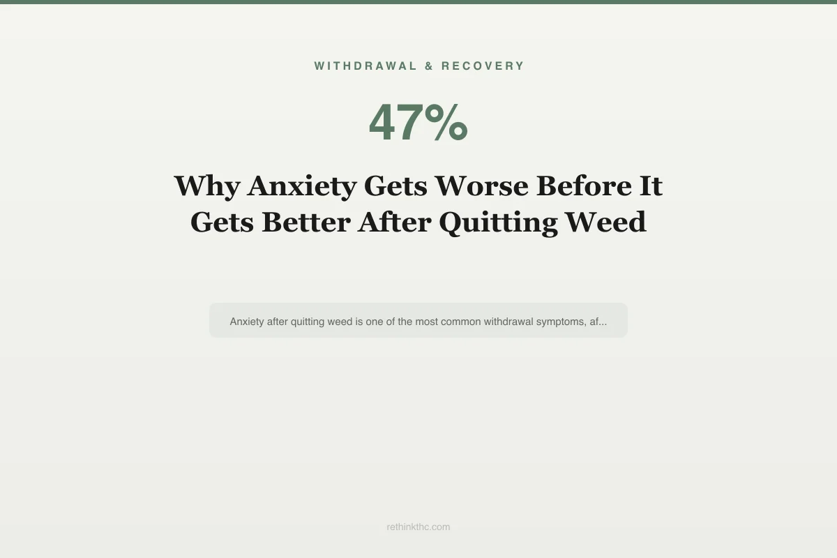 Know the difference. Not all post-quitting anxiety is withdrawal. If you had significant anxiety before you ever started using cannabis, some of what you are experiencing may be a pre-existing condition that cannabis was masking. The withdrawal anxiety vs real anxiety article provides a framework for sorting this out.