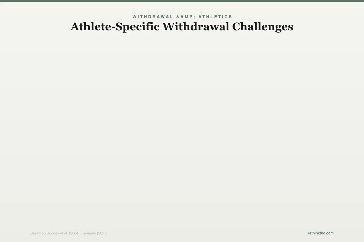 - Quitting as an athlete brings specific challenges: withdrawal-related sleep disruption directly undermines physical recovery, and the return of untreated pain can feel overwhelming