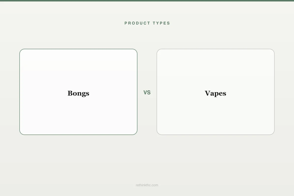 View as imageBongs, vaporizers, and pipes are the three most common devices for inhaling cannabis. Each one delivers THC to your lungs and then your bloodstream, but the mechanism is different enough that the health implications, the experience, and the efficiency vary in ways that matter. There is a lot of folk wisdom around these methods — bongs are "cleaner," vapes are "healthier," pipes are "harsh" — and some of it aligns with the research while some of it does not.