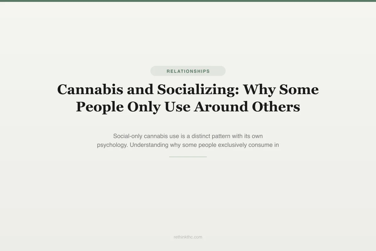 - Social-only cannabis use is a real and common pattern where people only consume in group settings and have no interest in using alone — similar to how many people only drink alcohol at social events