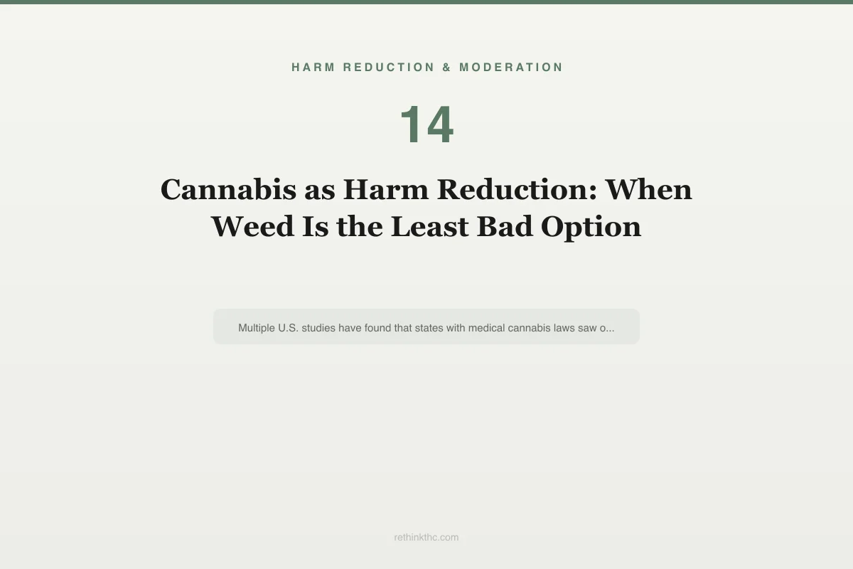Harm reduction ≠ harm elimination. Cannabis substitution works best with medical guidance, honest self-monitoring, and a clear understanding of what you are trading.