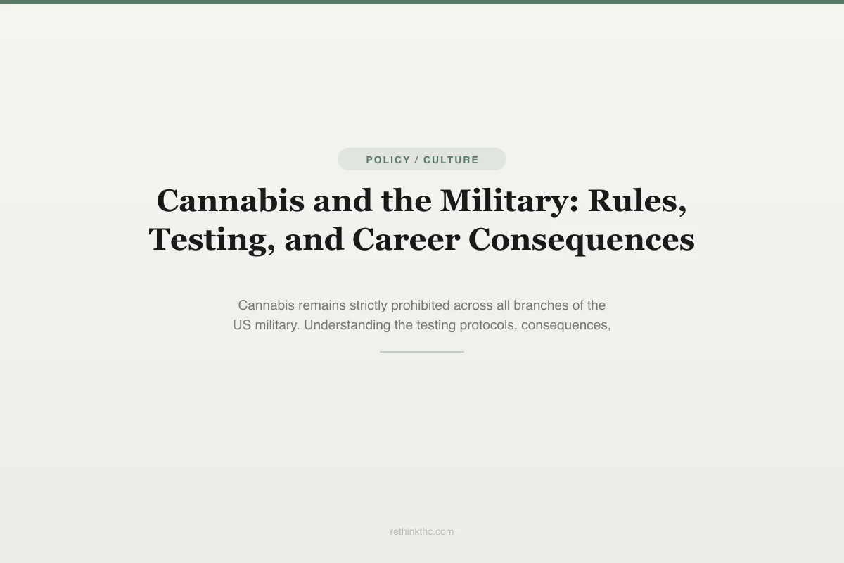 - Cannabis is banned for all active-duty military, reservists, and National Guard members regardless of state law — with zero-tolerance enforcement under the Uniform Code of Military Justice