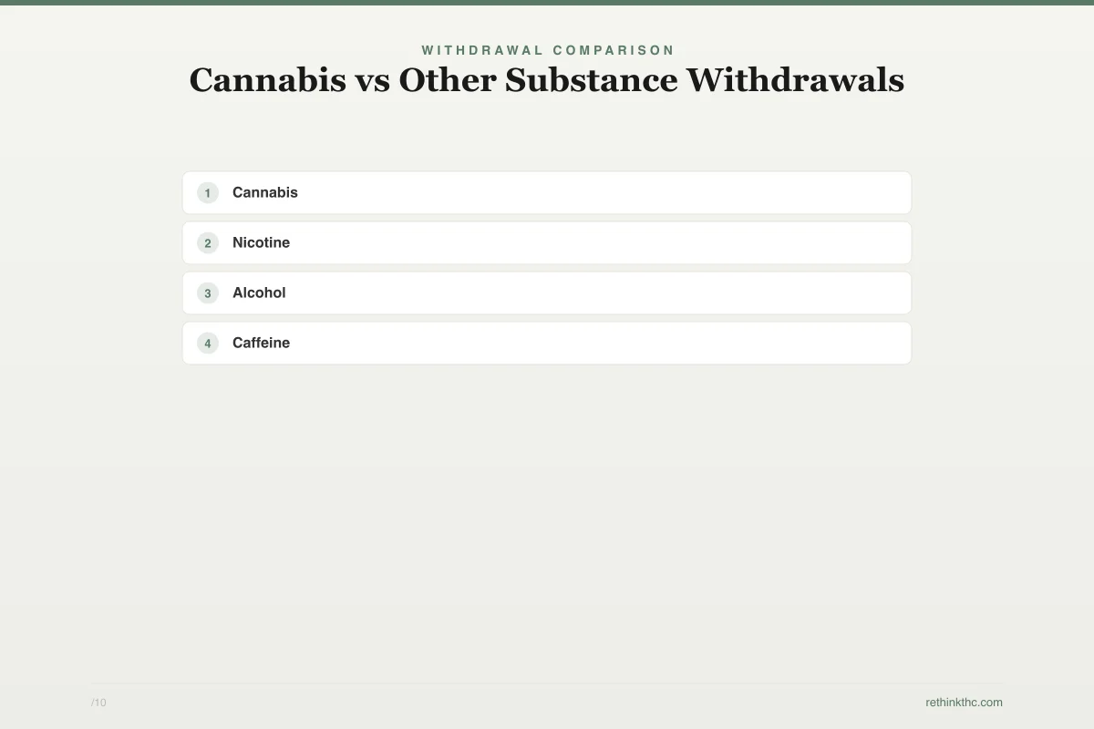 - Cannabis Withdrawal vs Nicotine, Alcohol, and Opioid Withdrawal