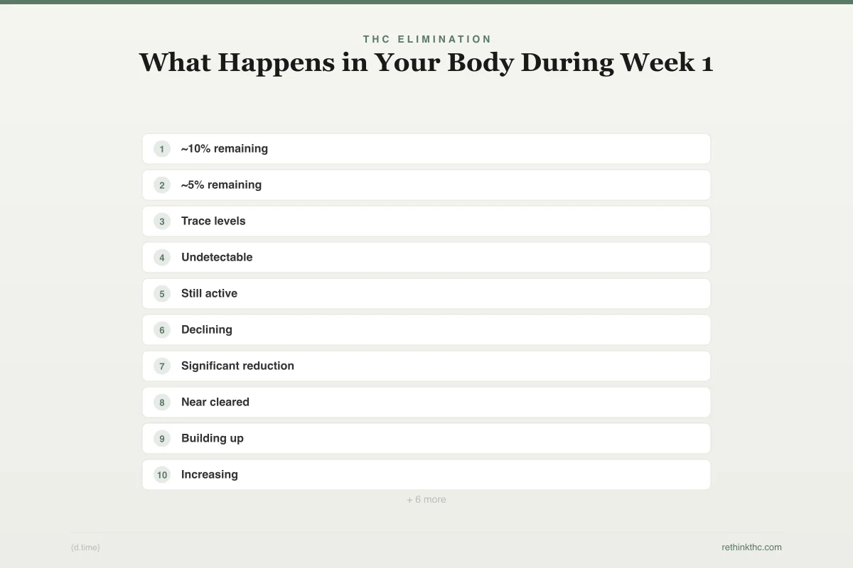 | Day 1 | Mild headache, subtle restlessness; residual THC still circulating | Mix of resolve and nervousness; mild evening cravings | Write down your specific reason for quitting |