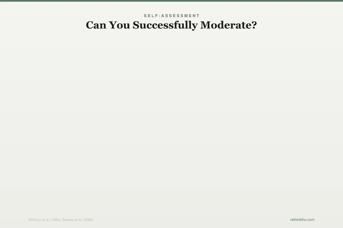 What that 9% figure means practically is that roughly 91 out of 100 people who use cannabis do not develop the compulsive, hard-to-control pattern that defines dependence. If you are in that majority, moderation is not just a nice idea. It is a realistic, evidence-supported option.