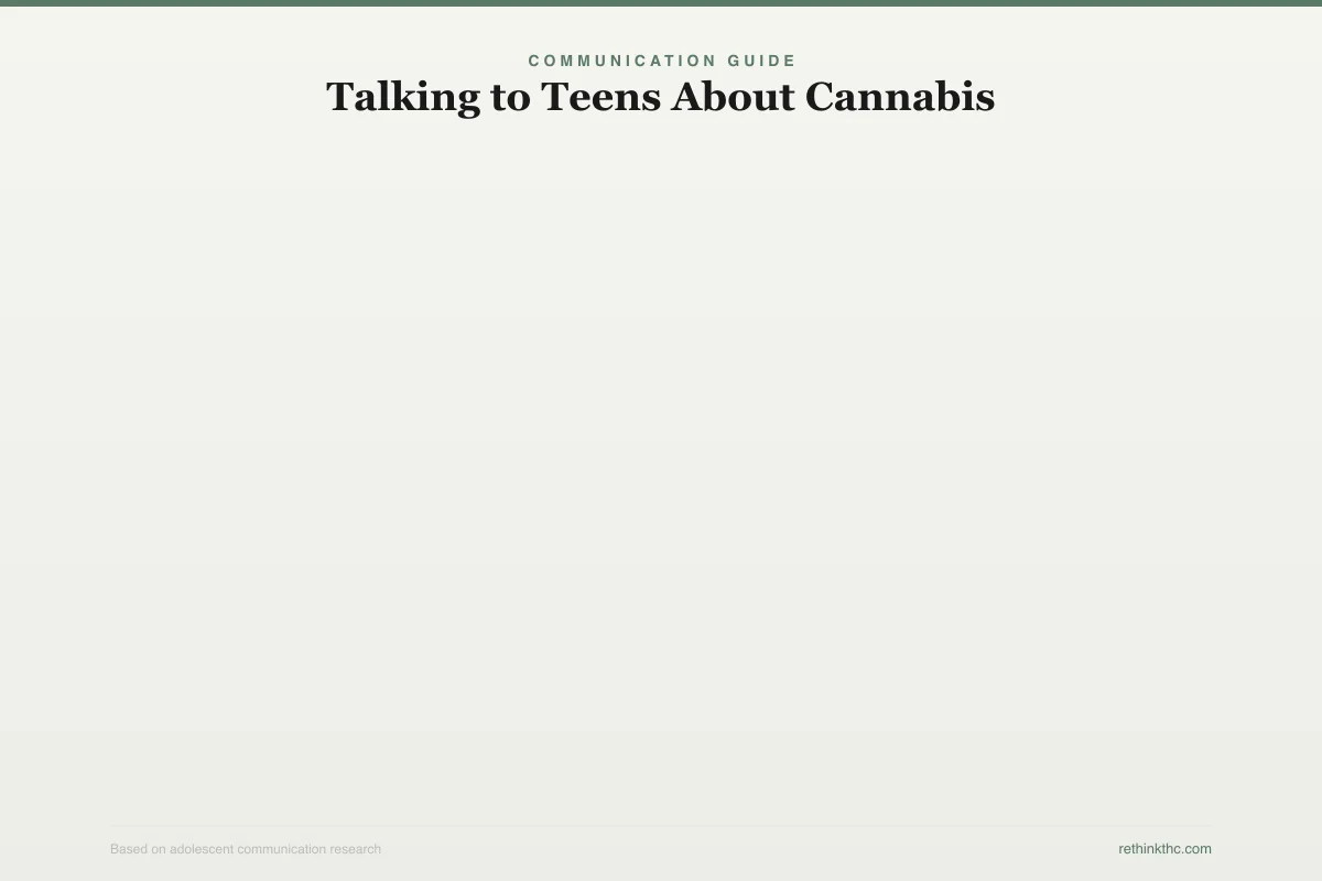 A teenager who hides their cannabis use from you is not safer than one who tells you the truth. They are more isolated from adult guidance at exactly the moments when they might need it most. The goal of these conversations is not to achieve compliance. It is to remain a trusted resource.