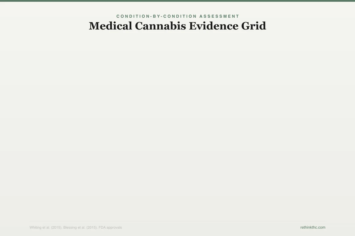 View as imageMost of what you read about medical cannabis online comes from anecdotes and observational data. The experimental evidence is thinner than the public conversation suggests. That does not mean the benefits are not real. It means the confidence we can place in specific claims varies enormously depending on which condition we are discussing.