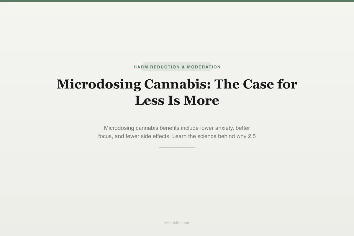 The key distinction is intent. Microdosing is not about getting a little bit high. It is about accessing the therapeutic properties of THC at doses low enough to avoid the side effects that make higher doses counterproductive for some people.