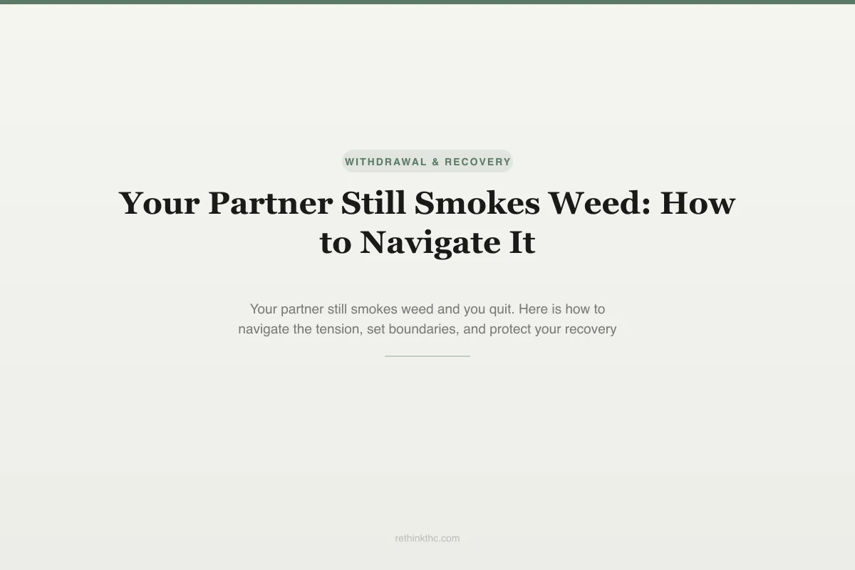 View as imageYou made the decision to quit. Your partner did not. That single sentence describes one of the hardest dynamics in cannabis withdrawal, and it gets almost no attention compared to the physical symptoms. You can find detailed guides on insomnia, appetite changes, and anxiety timelines. But navigating a household where one person is white-knuckling through cravings while the other is rolling a joint in the next room requires a different kind of guidance.