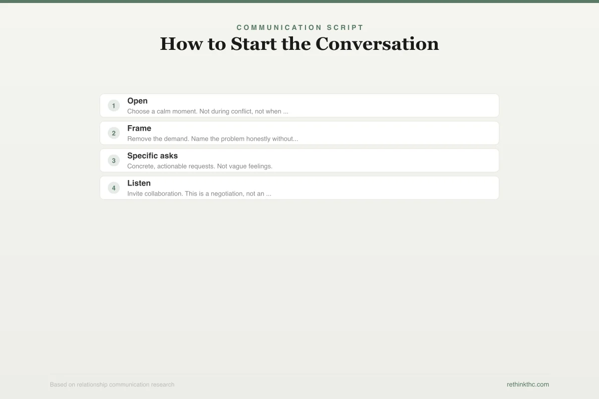 View as imageNot a fight. Not a lecture. A conversation where you share what you are experiencing without blaming them for it. The framework looks something like this: