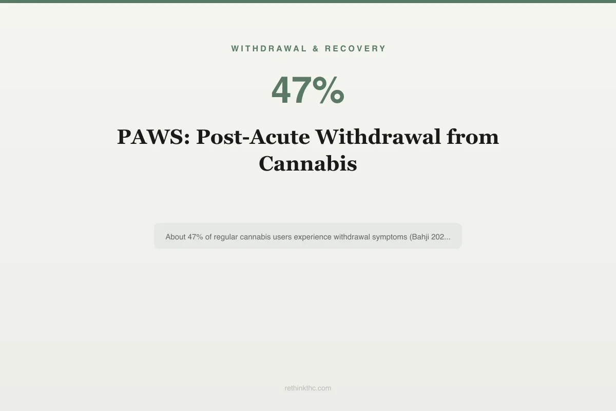 PAWS is not unique to cannabis. It has been documented across many substances, including alcohol, opioids, and benzodiazepines. With cannabis, the post-acute phase tends to be milder than with those substances, but it is real and it catches people off guard precisely because they expect to feel fine once acute withdrawal ends.