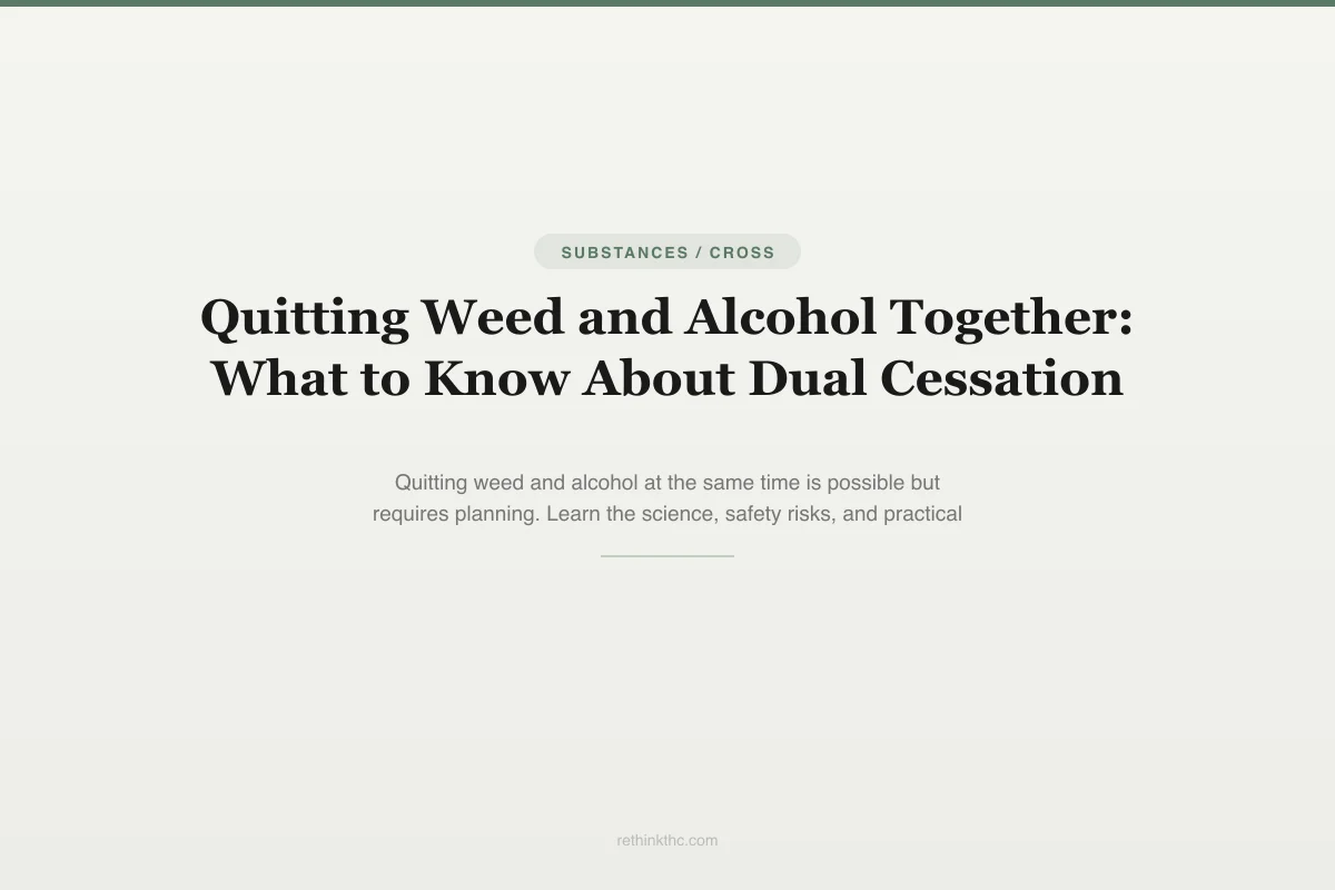 View as imageIf you are thinking about quitting weed and alcohol at the same time, you are facing something that most cessation advice does not address. Nearly every guide out there treats cannabis and alcohol as separate problems with separate solutions. But if your nightly routine involves both, if the joint and the drink are part of the same ritual, then stopping one while keeping the other does not actually match your situation. You need a plan for quitting both.