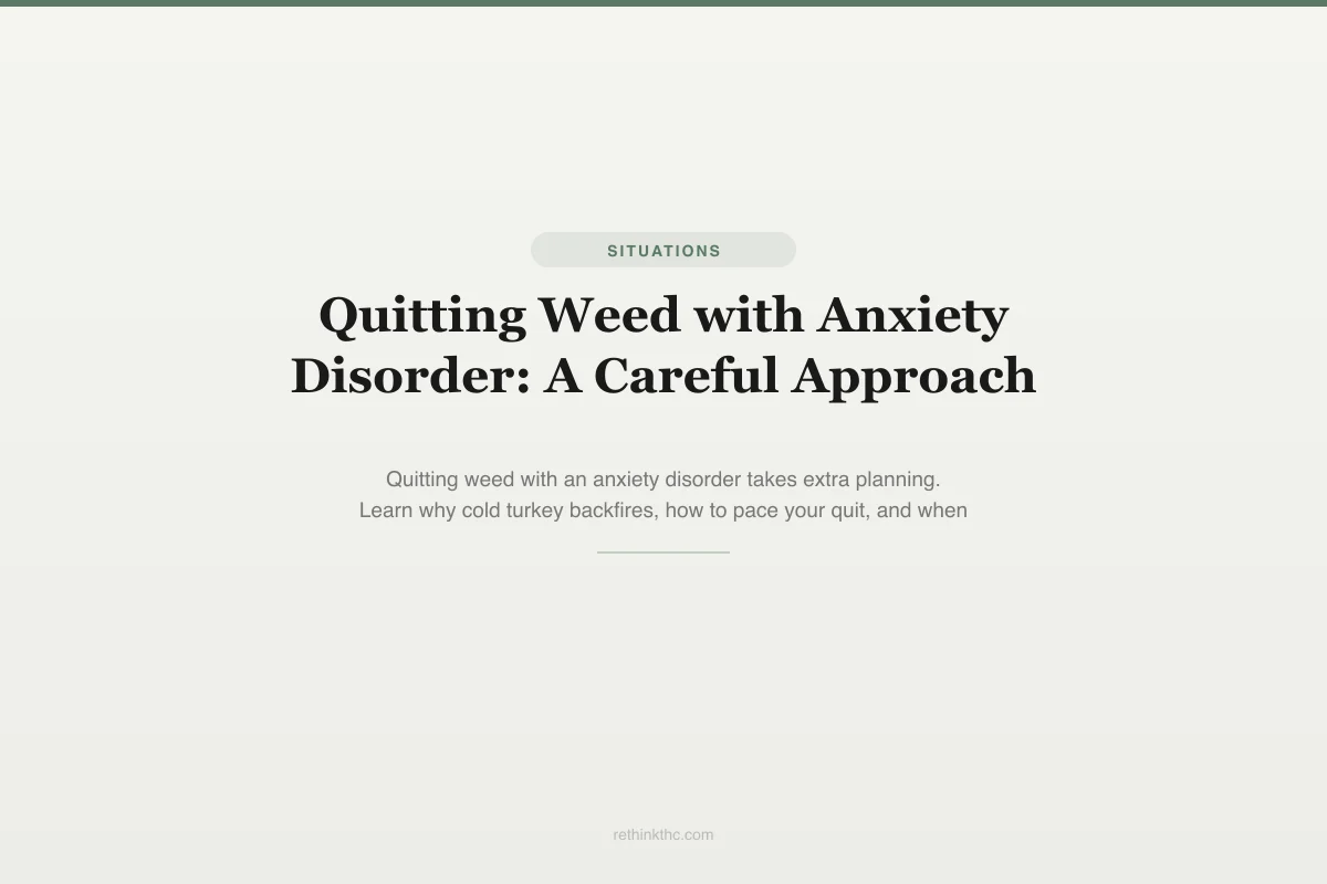 Quitting weed with an anxiety disorder is harder than quitting without one. That is not a limitation. It is information. And information changes outcomes. Knowing that withdrawal and your anxiety disorder will interact, knowing that your medications may need adjustment, knowing that a therapist dramatically improves your chances, knowing that cold turkey is not the only option. All of this gives you an advantage that most people do not have when they start this process.