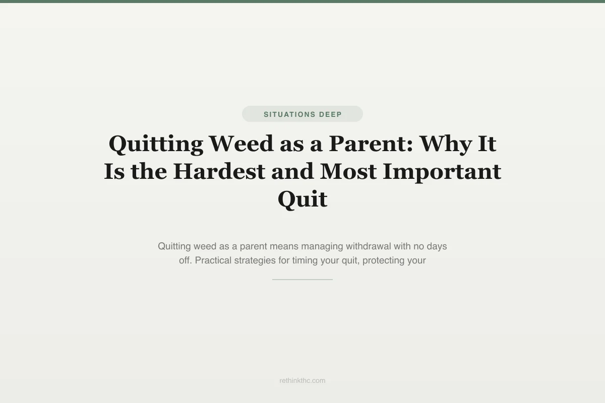 Parenthood is the most commonly cited reason people quit cannabis, but the zero-days-off structure of parenting makes withdrawal uniquely difficult because there is no option to check out during peak symptoms.