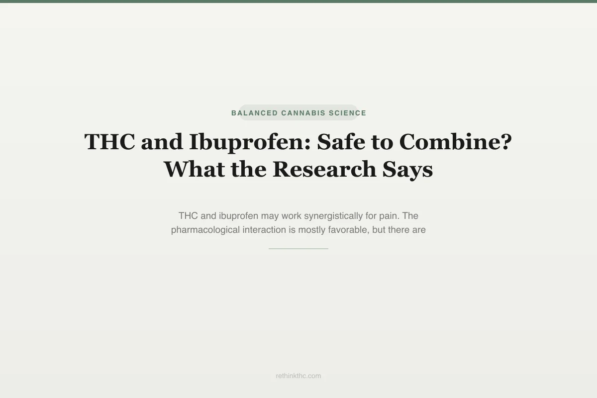 The THC-ibuprofen combination is one of the safer drug interactions in the cannabis pharmacology landscape. The mechanisms are largely complementary, the pharmacokinetic interaction is minimal, and the potential for synergistic pain relief is supported by preclinical evidence. For the vast majority of people using both substances occasionally for pain, the combination is reasonable -- but as with all medication decisions, discussing your full medication and supplement use with your healthcare provider helps ensure that your specific situation does not include risk factors that change the calculus.