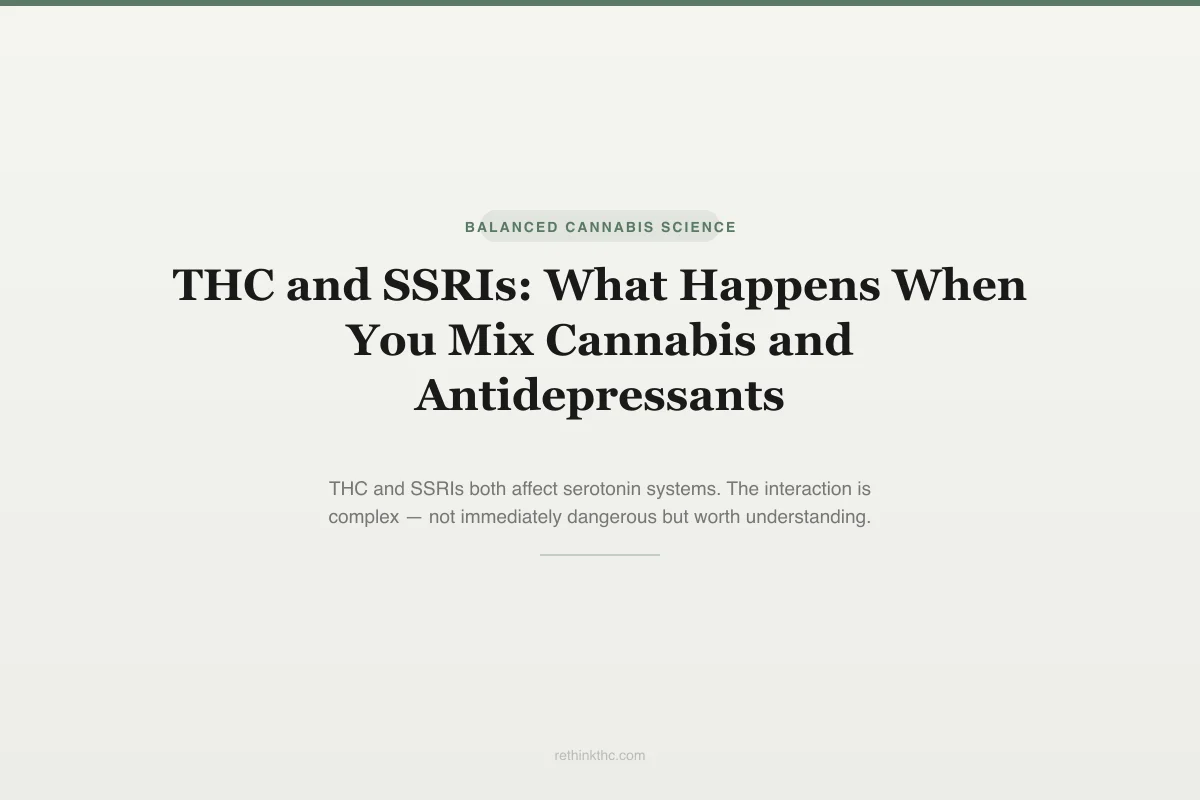 In practice, the risk appears to be extremely low. A small number of case reports in the medical literature describe serotonin-syndrome-like symptoms in patients using cannabis alongside SSRIs, but these cases typically involve additional serotonergic agents, very high doses, or unusual circumstances. No large epidemiological study has identified cannabis as a significant risk factor for serotonin syndrome in SSRI users.