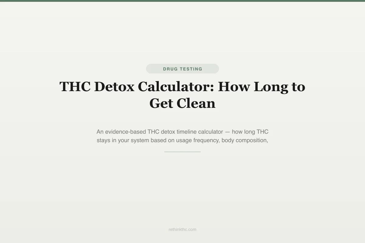 - The most reliable way to estimate your personal THC detox calculator timeline is to combine your usage frequency, body composition, and test type — then add a 5 to 10 day buffer for safety