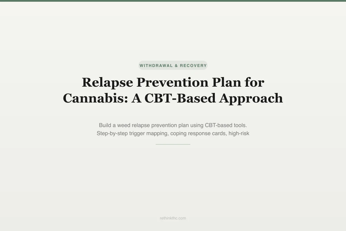 The complete guide to quitting weed covers the full process of stopping, but a relapse prevention plan is what keeps you stopped. This article walks you through building that plan, step by step, using the same CBT-based framework that clinical programs use. If you want the science behind why relapse occurs, the companion article on why weed relapse happens covers that in depth. If you have already relapsed and need immediate guidance, the post-relapse recovery guide is the place to start. This article is about prevention.