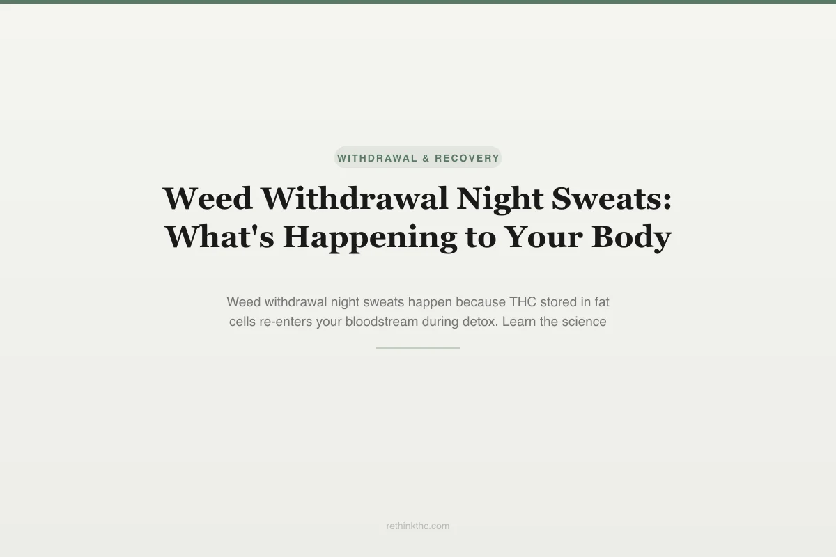Night sweats during cannabis withdrawal are driven by fat-stored THC re-entering the bloodstream, with the heaviest sweating easing within two to three weeks as your body clears a backlog spanning 30 to 90 days.