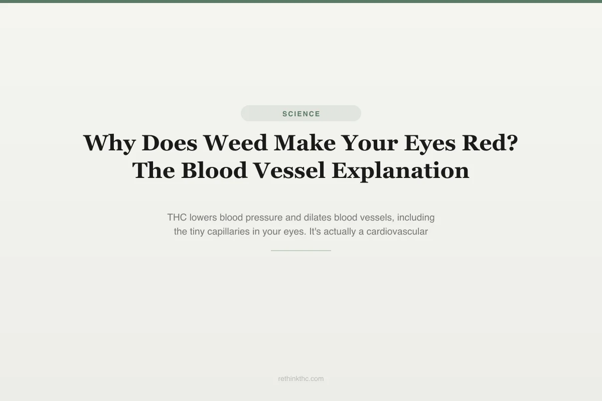 Red eyes from cannabis are a cardiovascular effect, not smoke irritation, caused by THC lowering blood pressure and dilating the tiny capillaries in the conjunctiva until they become visibly engorged.